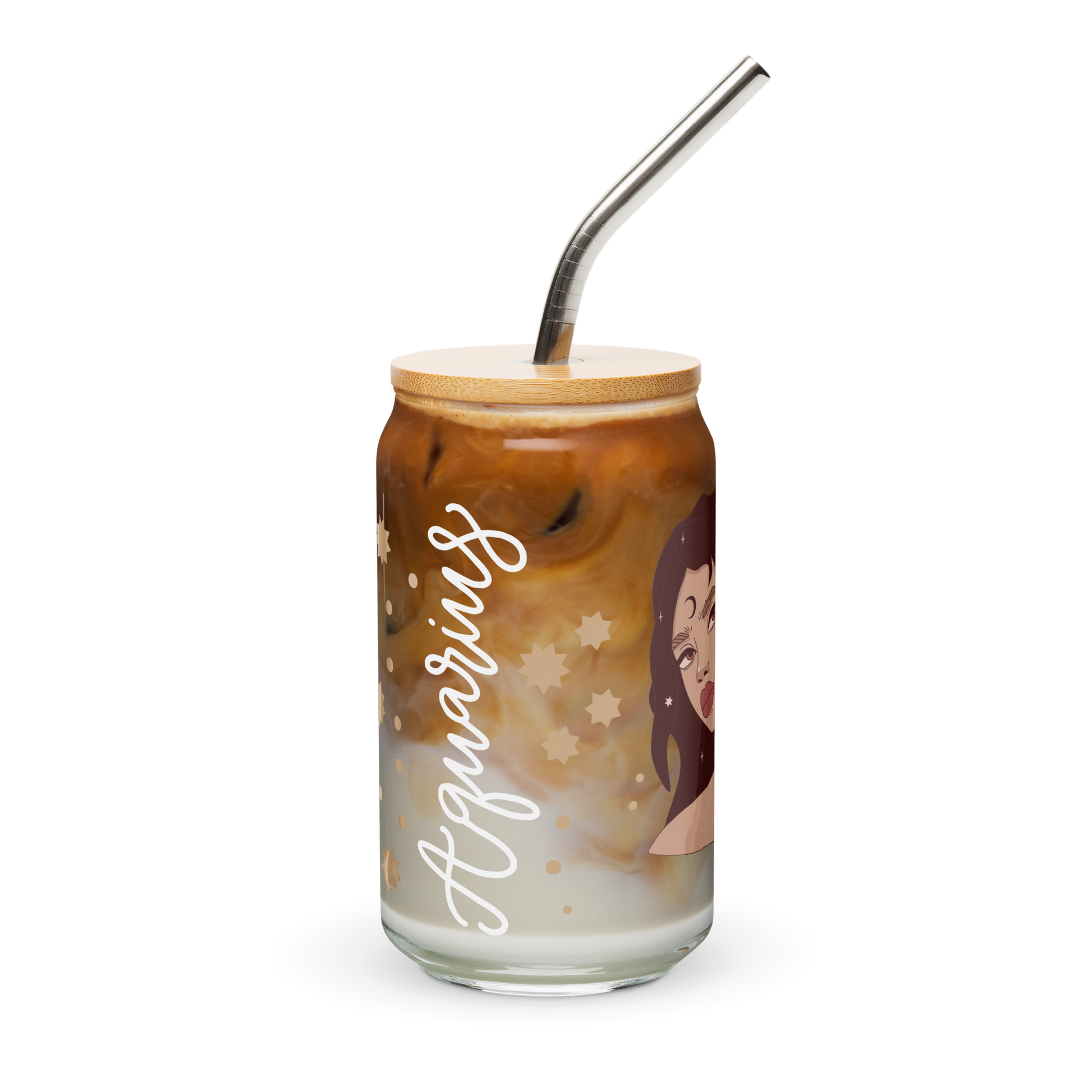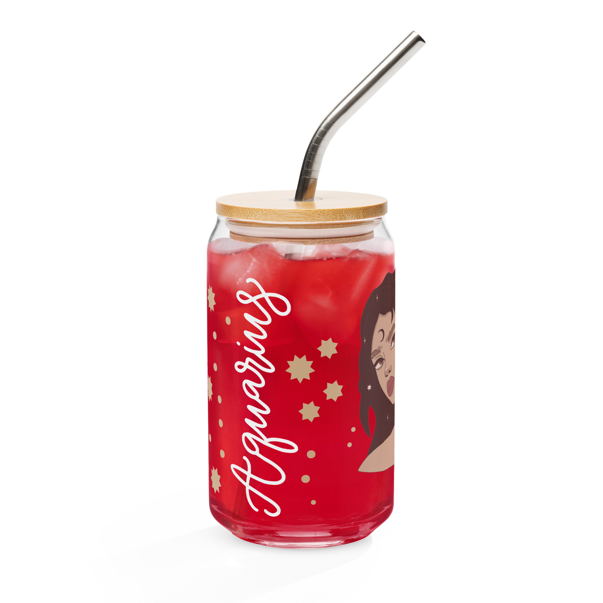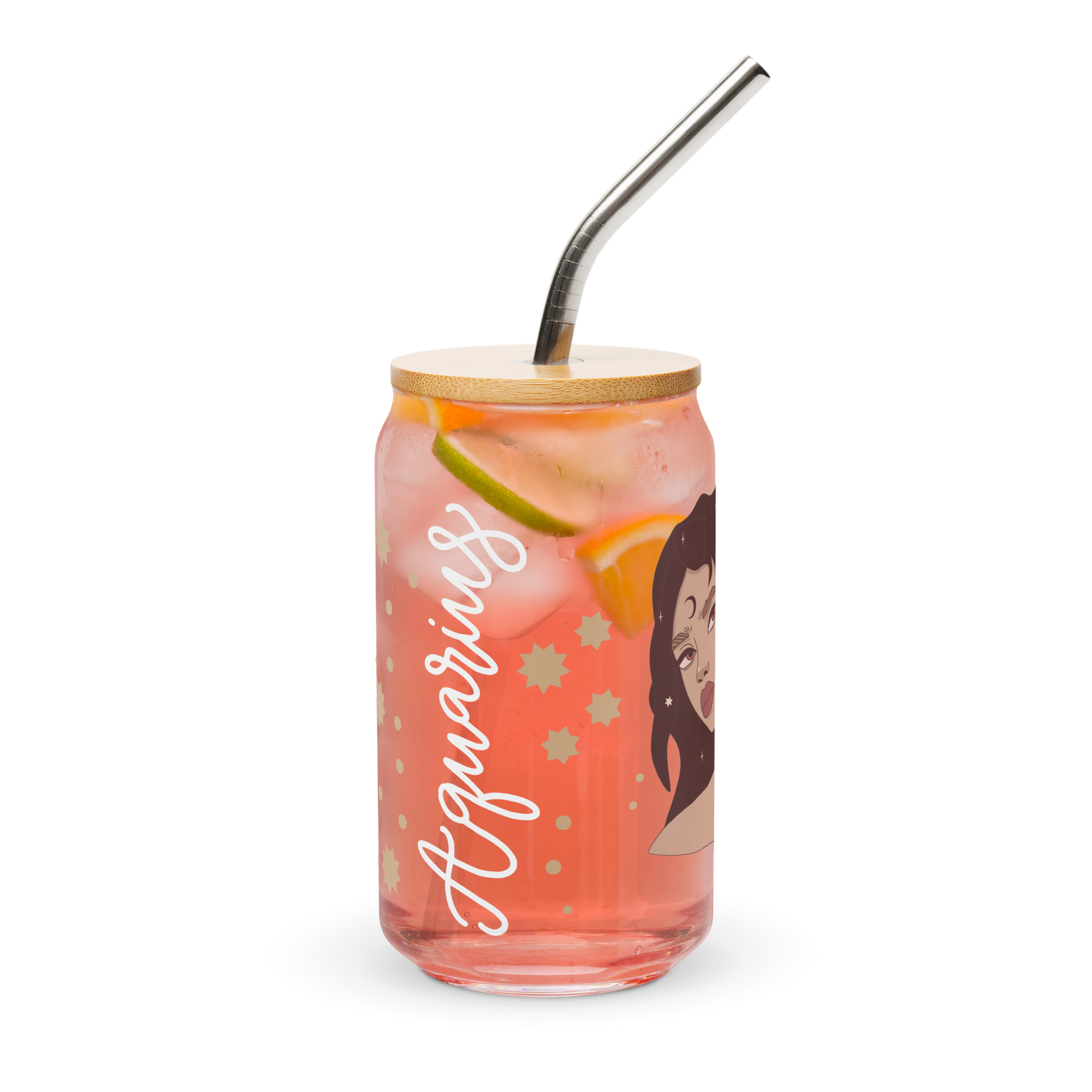 Aquarius Can-Shaped Glass with Bamboo Lid & Metal Straw